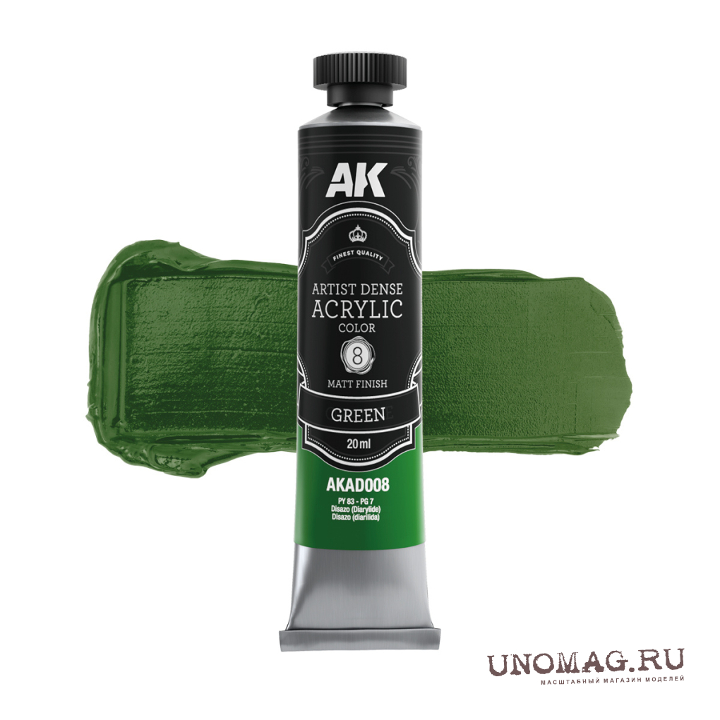 Краска акриловая ARTISTIC DENSE в тюбике - Зелёный / GREEN – ARTISTIC DENSE ACRYLIC COLOR, 20 мл