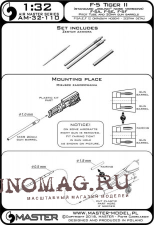 F-5 Tiger II "Freedom Fighter" (стандартные носовые версии) - F-5A, E, F - трубка Пито и 20-мм стволы