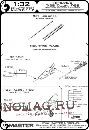Т-38 Talon / F-5B / RF-5A, E, S - трубка Пито и 20-мм стволы