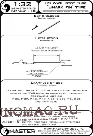Зонд типа «Акулий плавник» (1 шт.) - используется на P-36, P-39, P-40, P-47, A-36, B-239, T-6, B-25. и многое другое