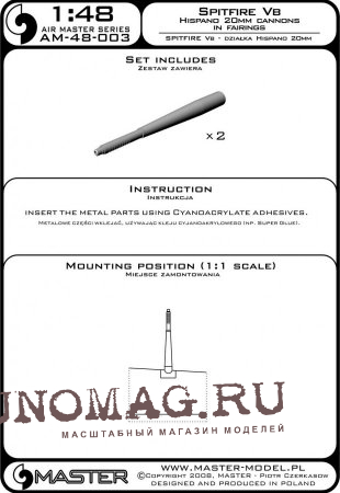 Набор из 2 стволов 20мм пушки Hispano с пламегасителем для истребителя Supermarine Spitfire Vb
