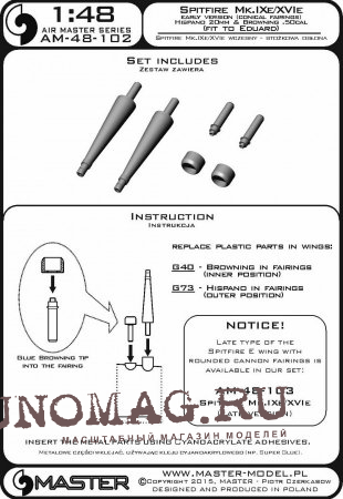 Набор вооружения для ранних модификаций Spitfire Mk.Ixe/XVIe, пушки Hispano 20мм и Browning 12,7мм