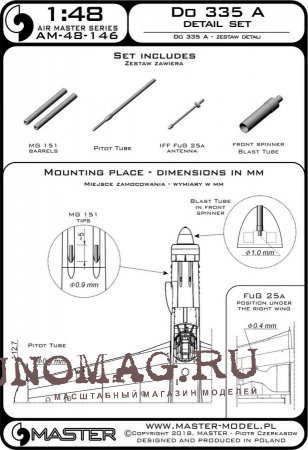 Набор вооружения, антенна FuG25a и ПВД для самолета Do 335 A