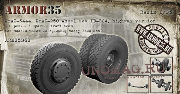 КрАЗ-6444, КрАЗ-250 Набор колес ИД-304 (10 штук+запаска+балка)