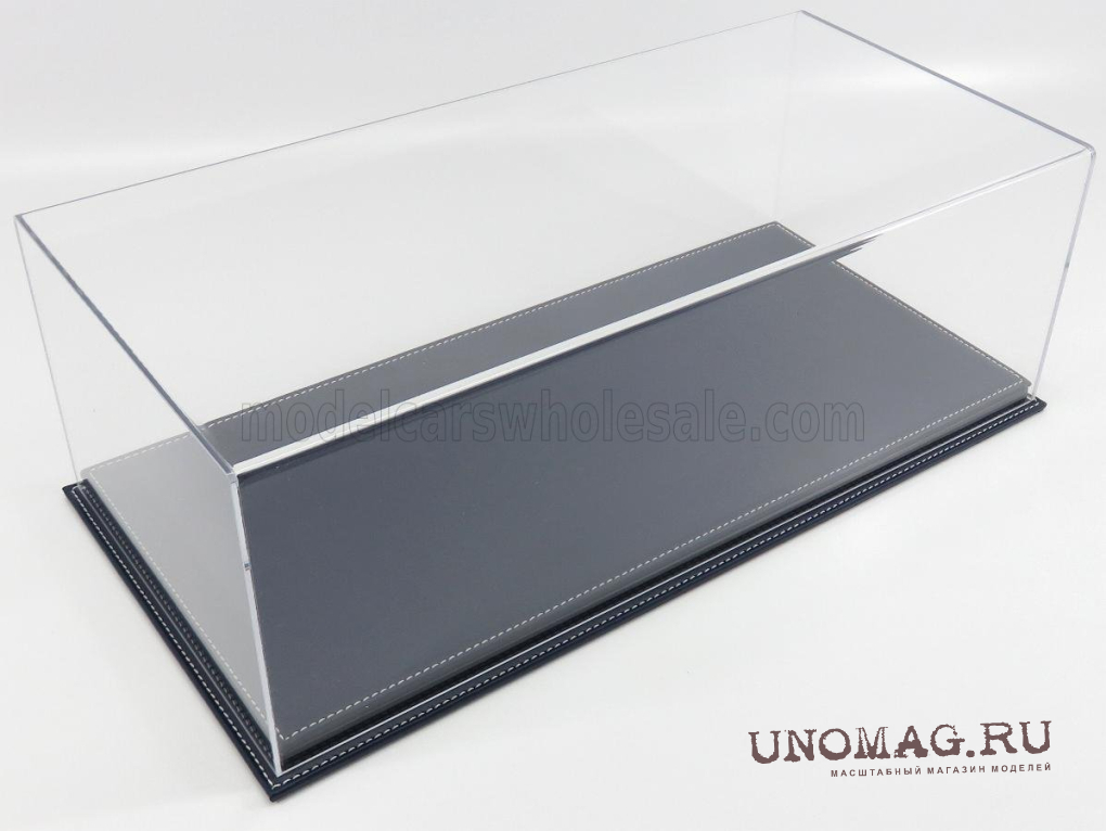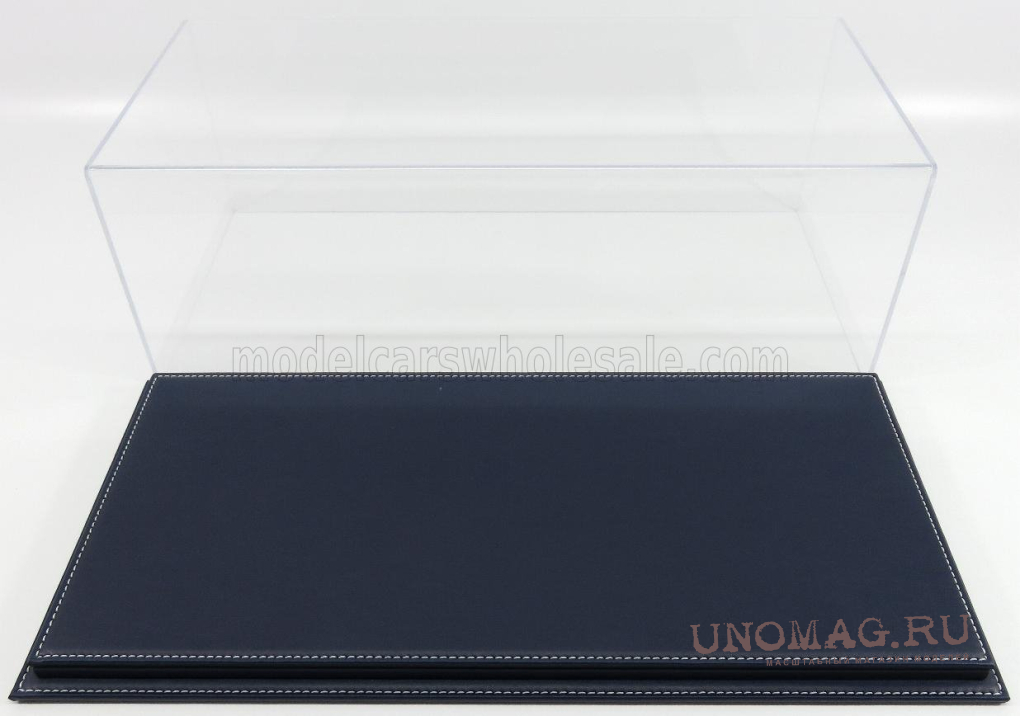 Бокс акриловый с подставкой из кожи синего цвета