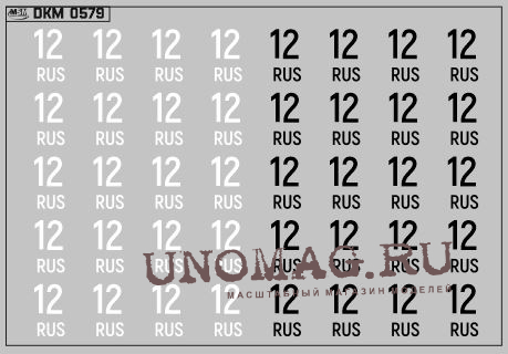 1:43 Набор декалей Дублирующие знаки России Цифры белые (100х70)