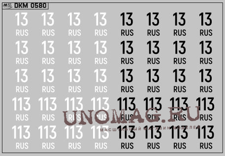 1:43 Набор декалей Дублирующие знаки России Цифры черные (100х70)