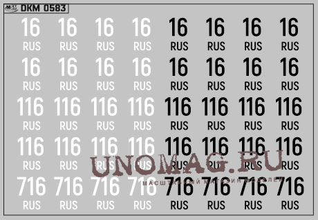 1:43 Набор декалей Дублирующие знаки России Цифры черные (100х70)