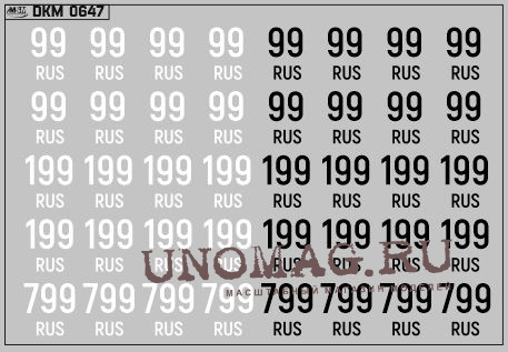 1:43 Набор декалей Дублирующие знаки России Цифры черные (100х70)