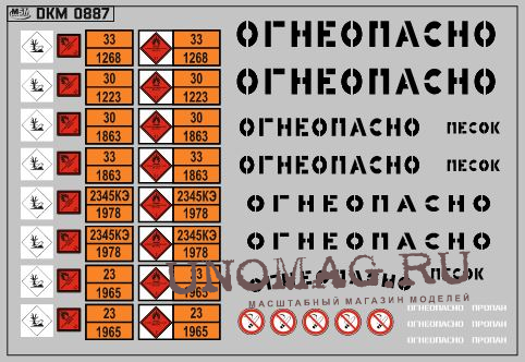 Набор декалей Маркировки опасных грузов и Надписи Огнеопасно (РАЗНЫЕ) черные (100х70)