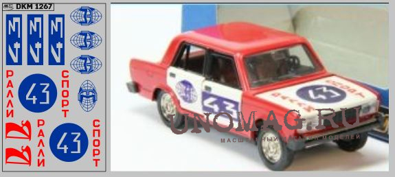 1:43 Декаль ВАЗ 2101 №85 (Козырчиков, Козырчикова) ралли 1000 озер 1975 г