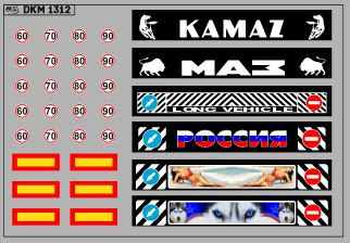 1:43 Набор декалей Грузовики и прицепы для МАЗ-9758, белый (100х290)
