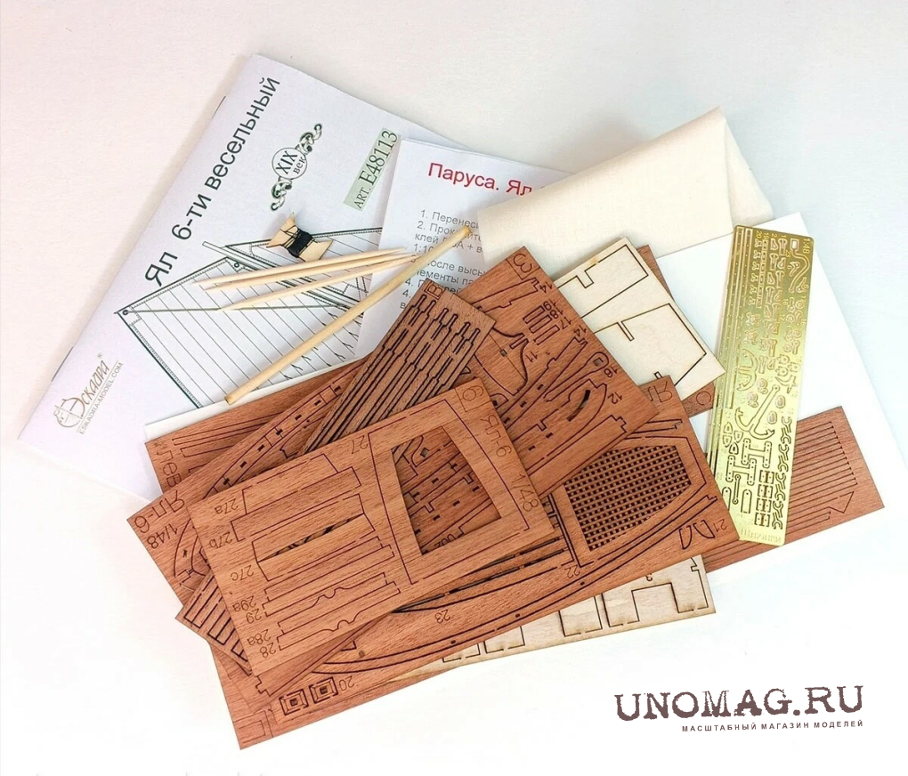 Материалы: шпон анегри, фототравление, фанера, переклейка, ткань для парусов, заготовки рангоута.