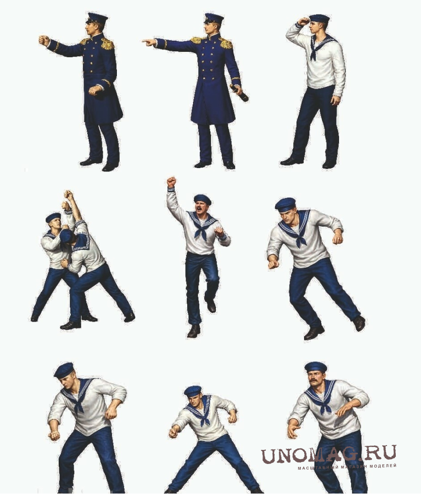 Команда для модели корабля: два офицера и восемь матросов.