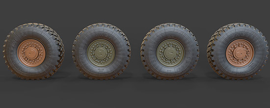 1:43 Резина, диски для КРАЗ 6х4 (ИД-304, шашка)