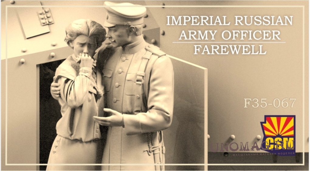 Две искусно выполненные 3D-печатные фигурки изображают русского офицера, который прощается с любимой женщиной - возможно, в последний раз. Эмоциональная композиция отражает мрачную неопределенность, с которой сталкивались солдаты, отправлявшиеся на фронт, и делает ее эффектным центральным элементом диорамы.
