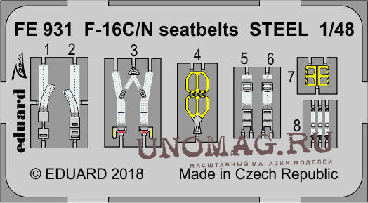 Фототравление для модели F-16C/ N seatbelts STEEL