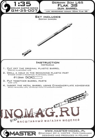 Просто отрежьте оригинальный пластиковый ствол, просверлите отверстие в оставшихся пластиковых деталях и вставьте металлический ствол, используя цианоакрилатный клей.