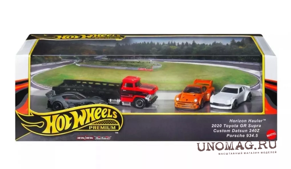 Набор из 4-х моделей: грузовик Horizon Hauler -TOYOTA Gr Supra (2020) - DATSUN 240z - PORSCHE 934