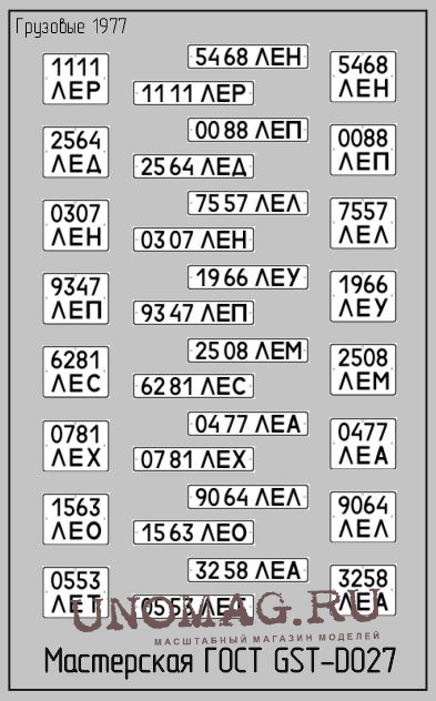 Набор декалей Номерные знаки для грузовиков (1977) Вариант 1