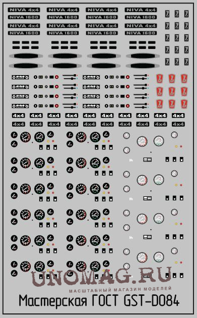 1:43 Набор декалей шильдики и приборные панели для доработки а/м НИВЫ (100х70)