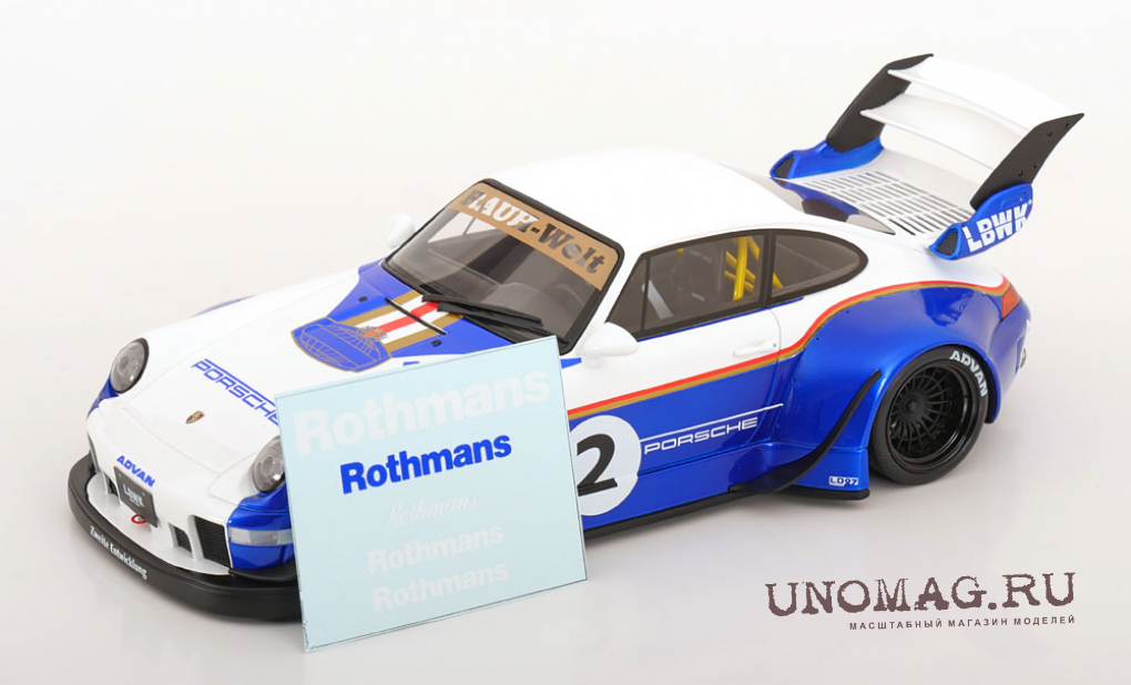 PORSCHE 911 (993) RWB X Liberty Walk Rothmans (2023), blue metallic /white