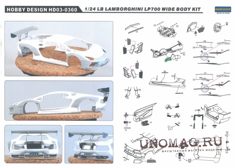 Конверсионный набор LB LP700 Wide Body Detail-up Sets для моделей Aoshima (Resin+PE+Metal parts+Decals)