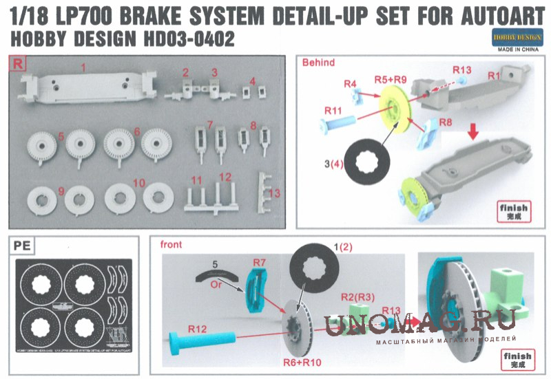 Набор для доработки Lamborghini Aventador Brake System для моделей Autoart LP 700 Model Detail-up Set