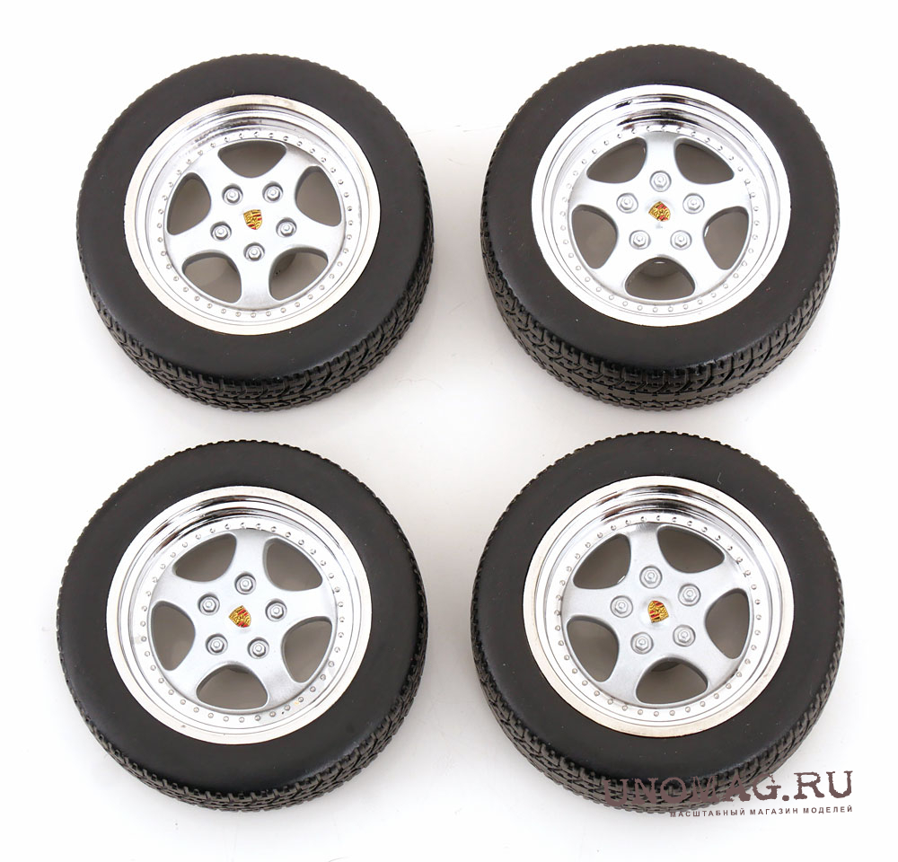 1:18 ACCESSORIES Set 4x Wheels And Hackmesser Rims For Porsche 911 Carrera Clubsport, Silver