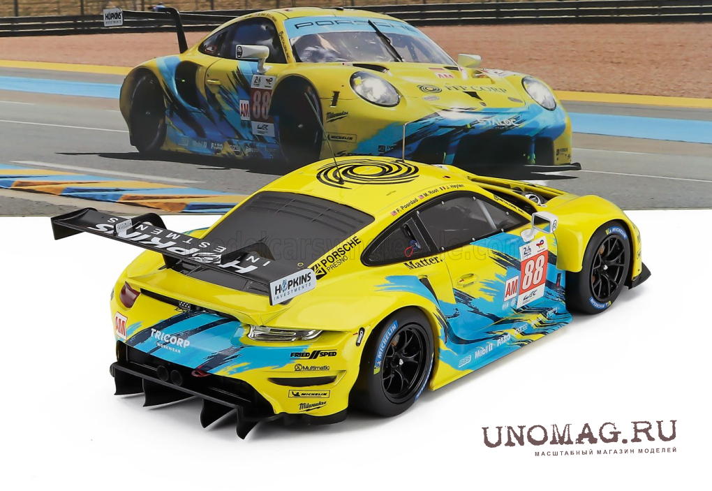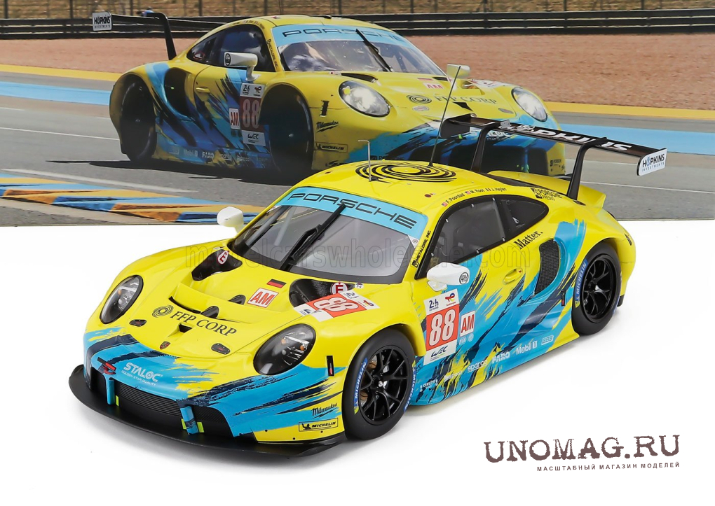 PORSCHE 911 991 Rsr-19 4.2l Team Dempsey Proton Racing №88 24h Le Mans (2022) Fred Poordad - Maxwell Root - Jan Heylen, Yellow Light Blue