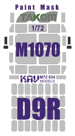 Окрасочная маска для модели тягача M1070 с бульдозером D9R производства Takom. Внешняя и внутренняя. Для набора 5002. + Бонус - зеркала