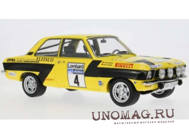 OPEL Ascona A #4 RAC Rally W. Röhrl and C. Geistdörfer (1975), yellow/black