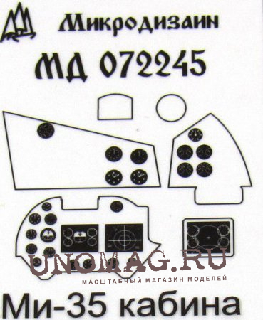 МД 072245 Набор фототравления Ми-35 (интерьер) от Звезды. Масштаб 1:72. Набор комплектуется платой фототравления, плёнкой приборных досок и цветной инструкцией. Количество уникальных деталей 106 шт. Уровень сложности - средний.