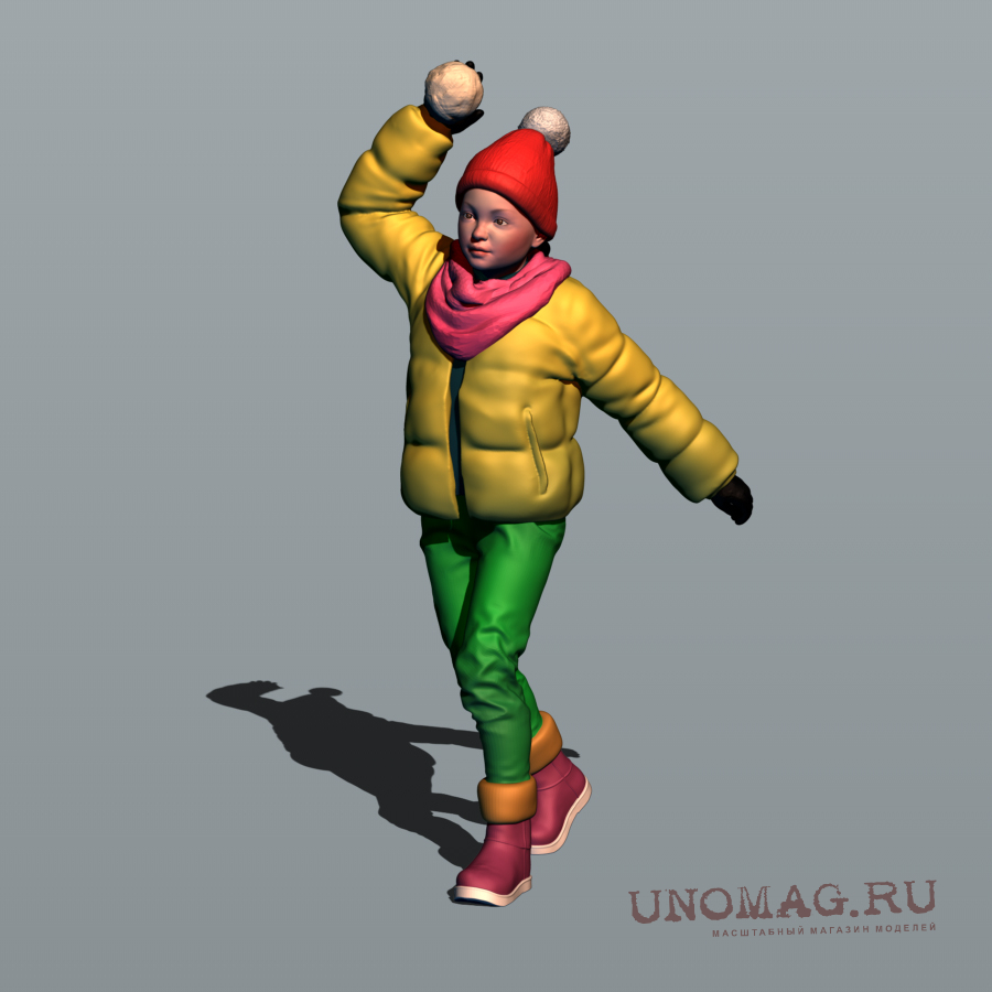 Фигура Девочка играет в снежки (масштаб 1:24), окрашенная