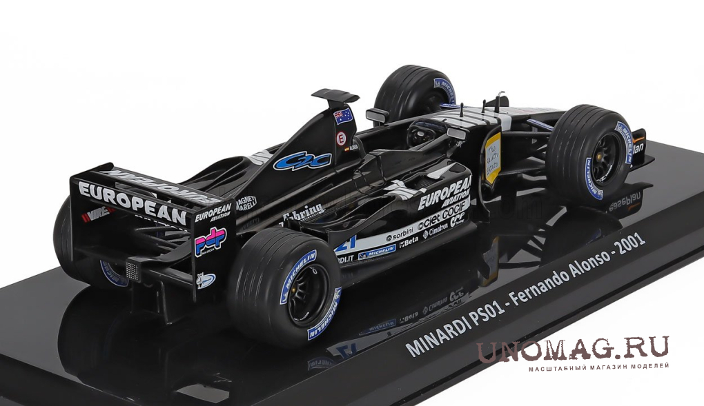 MINARDI F1 Ps01 Team European №21 Season (2001) Fernando Alonso - Blister Box, Black White