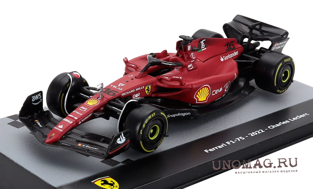 FERRARI F1-75 Scuderia Ferrari №16 Season (2022) Charles Leclerc - Con Vetrina - With Showcase, Red Black