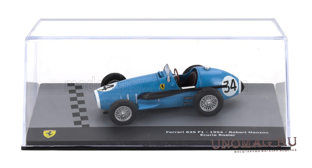 FERRARI F1 625 Team Rosier №34 Season (1954) Robert Manzon - Con Vetrina - With Showcase, Light Blue