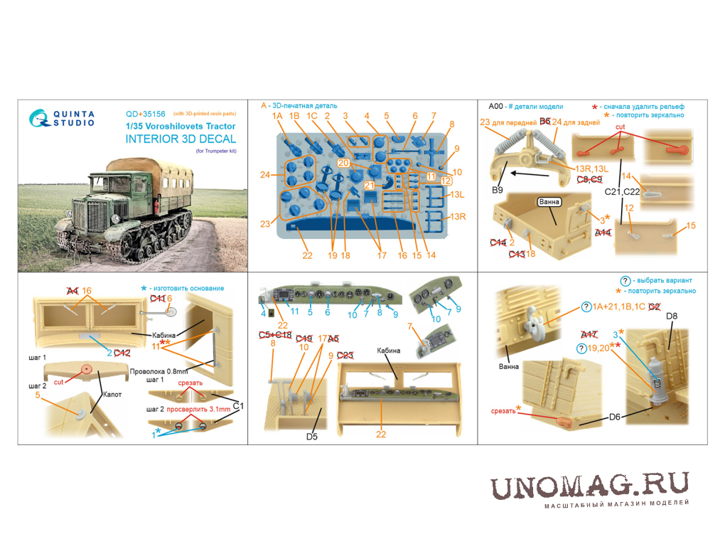 3D Декаль интерьера кабины трактора "Ворошиловец" (Trumpeter) (с 3D-печатными деталями)