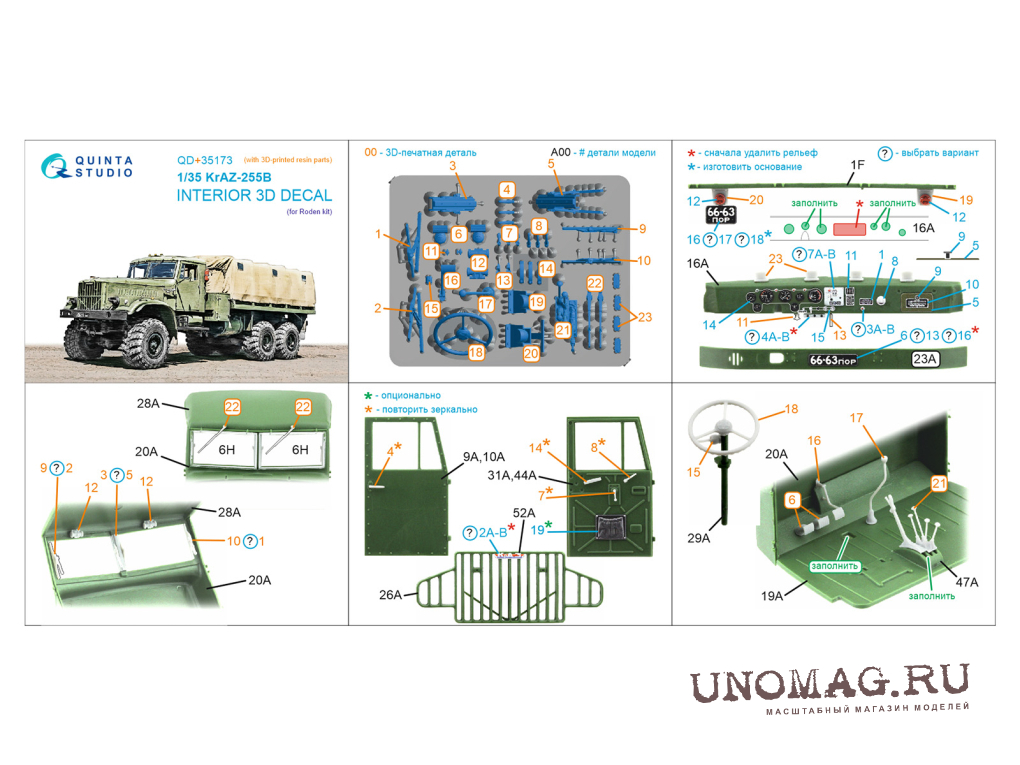 3D Декаль интерьера кабины КрАЗ-255Б (Roden) (с 3D-печатными деталями)