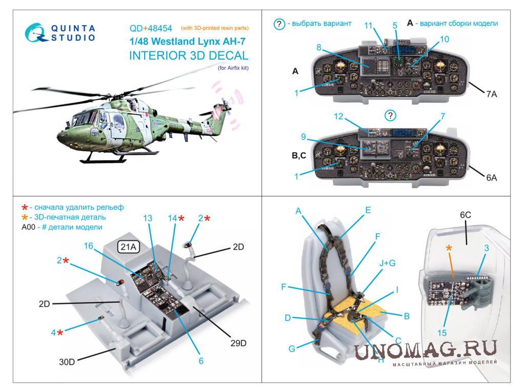 Декаль интерьера кабины Lynx AH-7 (Airfix) (с 3D-печатными деталями)