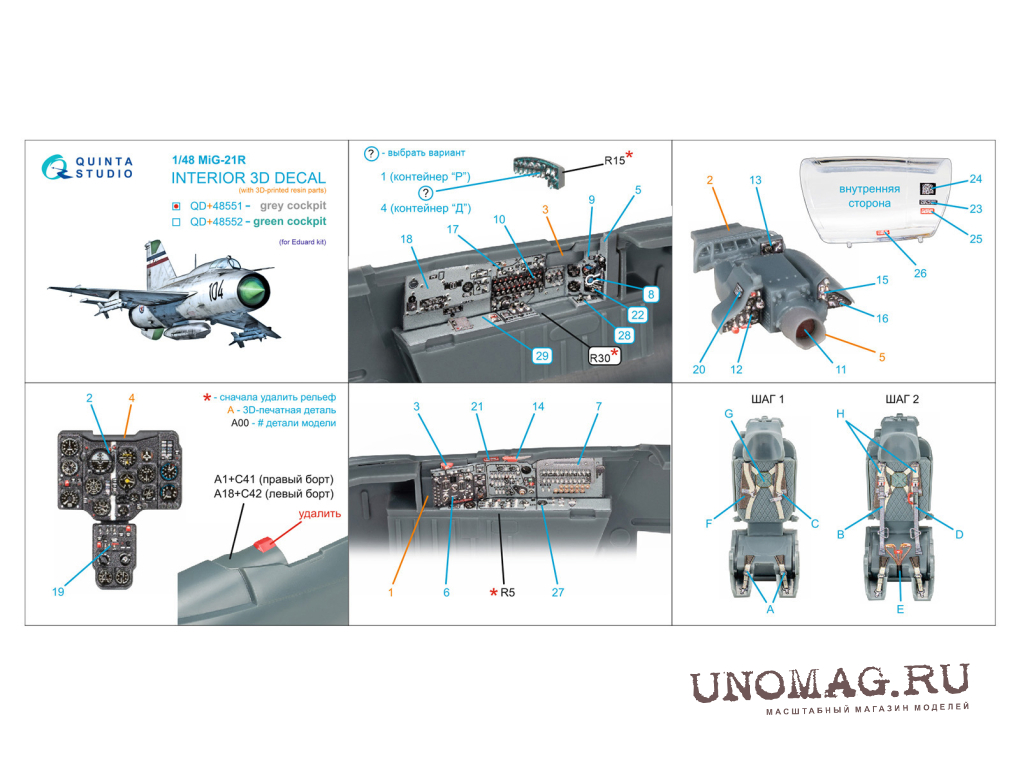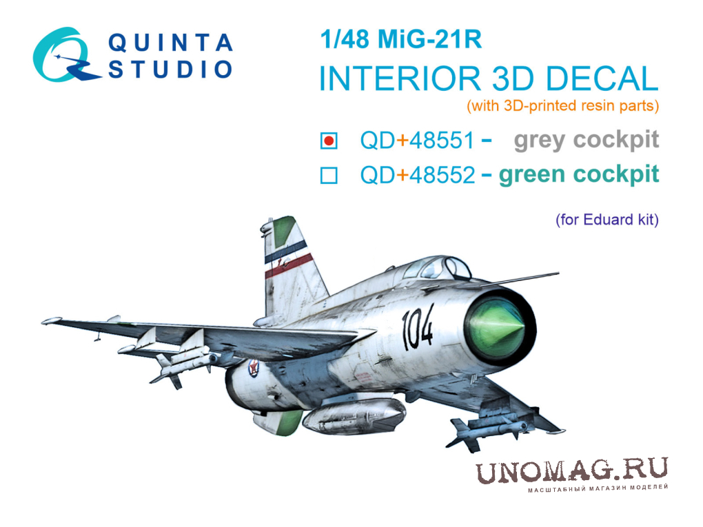 Декаль интерьера кабины МиГ-21Р, серые панели (Eduard) (с 3D-печатными деталями)