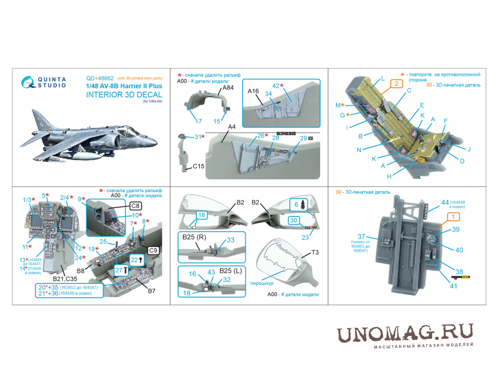 3D Декаль интерьера кабины AV-8B Harrier II Plus (UMa) (с 3D-печатными деталями)