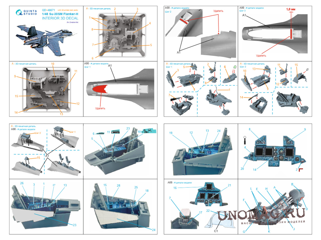 3D Декаль интерьера кабины для Суххой-30СМ (Звезда) (с 3D-печатными смоляными деталями)