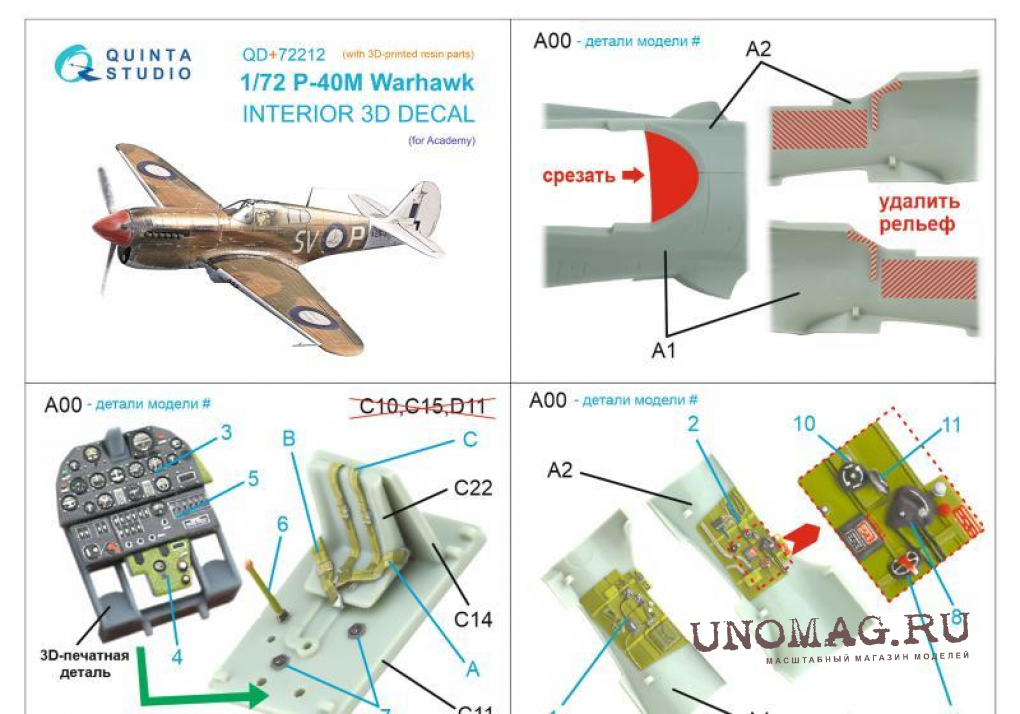 3D Декаль интерьера кабины P-40M Warhawk (Academy) (с 3D-печатными деталями)