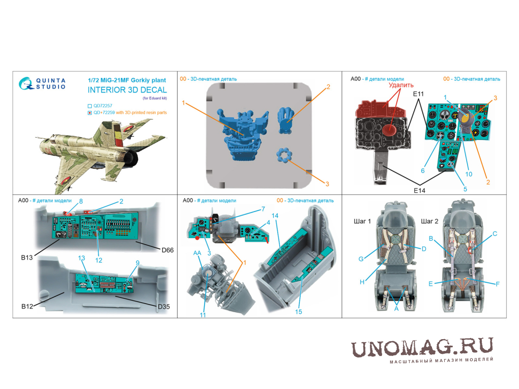 3D Декаль интерьера кабины MiGG-21МФ (Горьковского завода) (Eduard) (с 3D-печатными деталями)