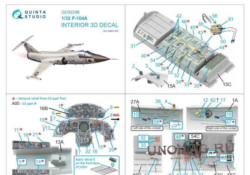 3D Декаль интерьера кабины F-104A (Italeri)