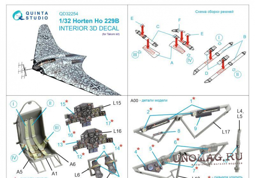 3D Декаль интерьера кабины Horten Ho 229B (Takom)