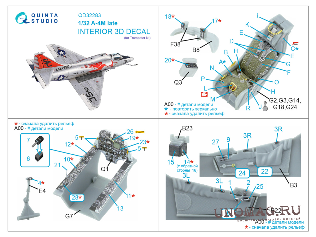 3D Декаль интерьера кабины A-4M Late Skyhawk (Trumpeter)