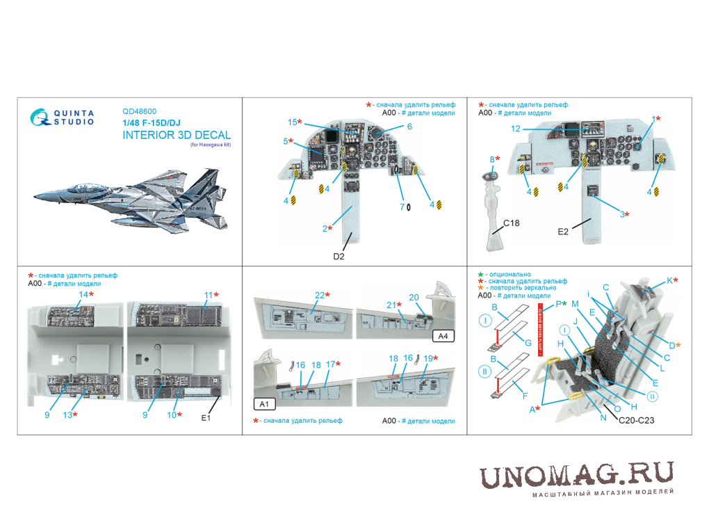 3D Декаль интерьера кабины F-15D/F-15DJ (Hasegawa)