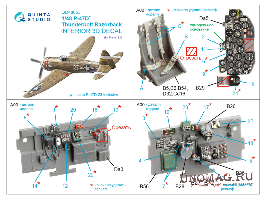 3D Декаль интерьера кабины P-47D Thunderbolt Razorback (Miniart)